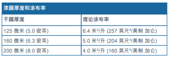 備注: 對于不易進(jìn)行正常涂裝的特殊局部, 兩道均勻分布的涂層總干膜厚度: 1500 微米 (60.0 密耳)。