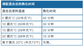 調(diào)配的體積混合比例:基料:固化劑 = 50:50 (1:1)