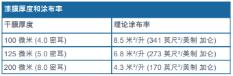 -敬請(qǐng)參閱補(bǔ)充數(shù)據(jù)表 - 理論涂布率與干膜厚度對(duì)照關(guān)系表。