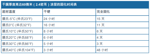 ?在涂裝施工和涂層固化過程中必須確保底材溫度至少高于露點溫度攝氏 3°C(華氏5°F) 以上