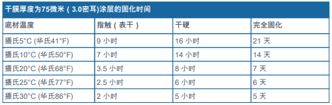 - 敬請(qǐng)參閱補(bǔ)充參數(shù)表 - 涂層固化時(shí)間表。