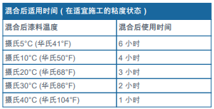 ?在涂裝施工和涂層固化過(guò)程中應(yīng)確保底材溫度高于攝氏 5°C (華氏41°F)。