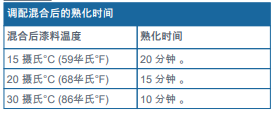 ?涂裝前最好應將各組份或混合后的漆料溫度調(diào)控到攝氏15°C (華氏59°F)以上, 不然則可能需要添加稀釋劑,以便將漆料粘度調(diào)整到適合施工的粘稠狀態(tài)。