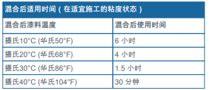 -涂層可踩踏干時間也就是漆膜達到硬干狀態(tài)的最短覆涂間隔時間,這樣可防止涂層受損。