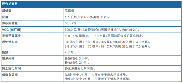 ?符合挪威NORSOK M501 標準第6版的涂層體系System7C要求,溫度可至攝氏150°C(華氏302°F),3道涂層體系(由酚醛環(huán)氧底漆 930/酚醛環(huán)氧