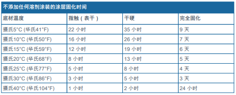 -實際上的固化時間可能還會隨底材、環(huán)境和漆料的溫度變化而有所不同。