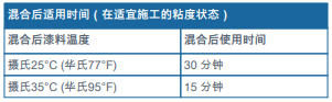 -混合后適用期由多種可變因素決定,包括漆料溫度 ?底材溫度 ?混合時間 ?稀釋比例等。所列數(shù)據(jù)僅供參考。