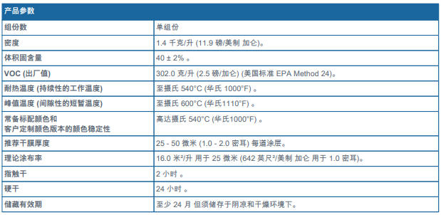 ?由特種有機(jī)硅酮樹(shù)脂研發(fā)而成的耐高溫面漆,可耐受最高溫度可至攝氏 540°C (華氏1000°F)的苛刻熱循環(huán)。
