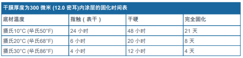 -敬請參閱補充參數(shù)表 - 涂層固化時間表。