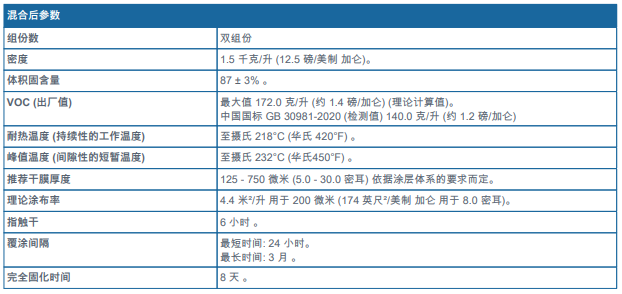 -該表所列數(shù)據(jù)為用于外露干燥環(huán)境下的最高溫度,若用于絕熱保溫層底下的腐蝕防護,則敬請參閱相應(yīng)的涂層體系規(guī)格書。