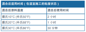 ?在涂裝施工和涂層固化過程中應(yīng)確保底材溫度高于攝氏 5°C (華氏41°F)。